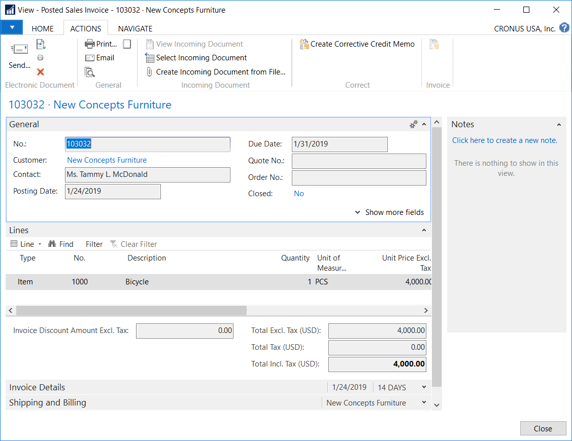 Step 1. Open a Posted Sales Invoice to send an Email from.
