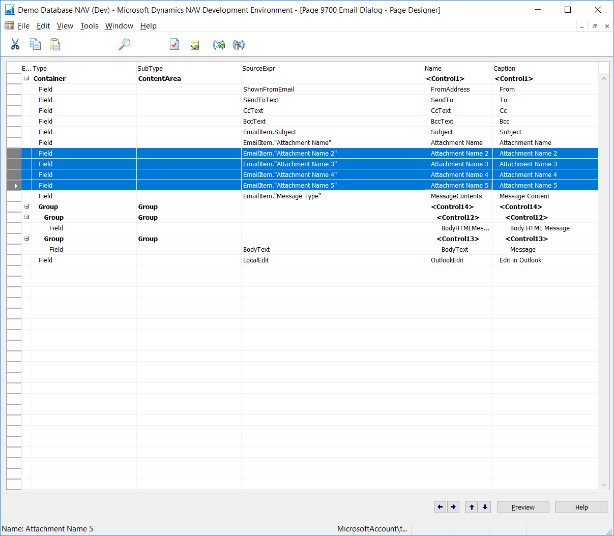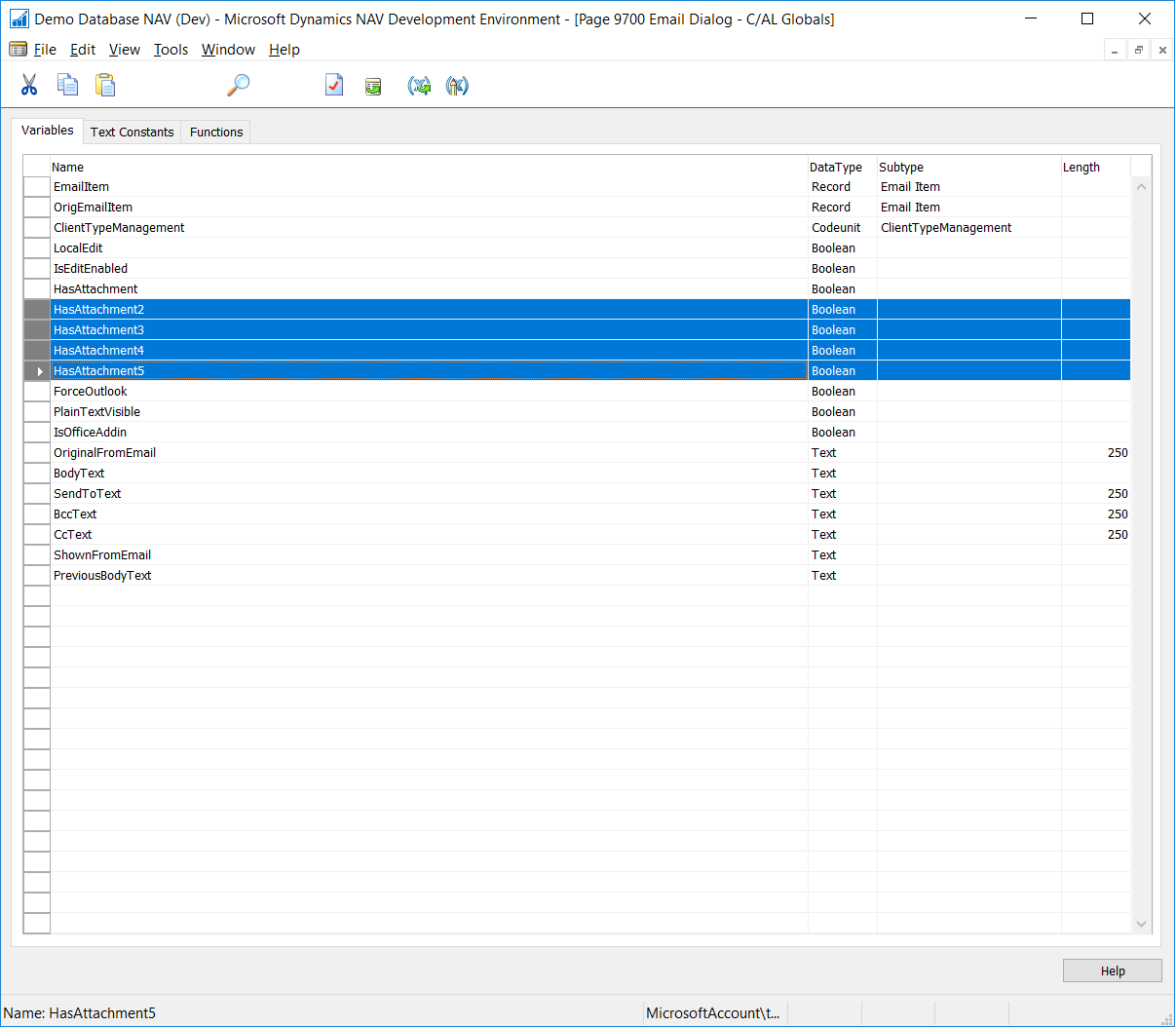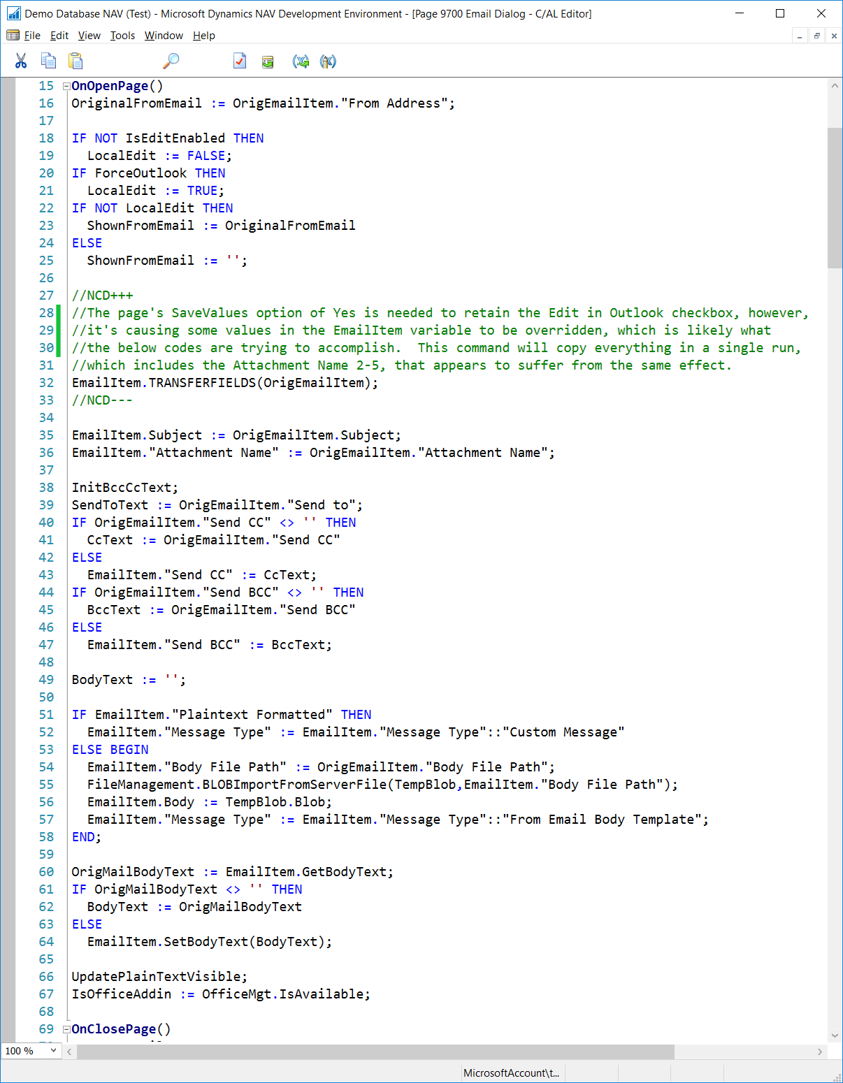 On a different note, it shouldn't be necessary to complicate things with all the extra variables and EmailItem variable, we could've done the exact same thing with the page's temporary, Email Item record, and do a single TRANSFERFIELDS to that record, from the OrigEmailItem record.