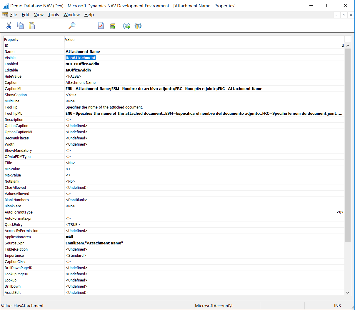 As for the IsOfficeAddin, the name is pretty generic so I checked where the property is being set (IsOfficeAddin := OfficeMgt.IsAvailable;). I'm not entirely certain what this means, but if I were to venture a guess, I'd say it has something to do with an office integration. However, the Enabled and Editable properties are very related but what I'm seeing here doesn't make much sense since, Enabled, normally means the field can have focus, while Editable means we can make changes to it. Assuming the IsOfficeAddin returns a True, that means the field is NOT enabled (cannot have focus) but can be Edited? Inversely, if the IsOfficeAddin returns a False, it means the field is Enabled (can have focus), yet it's NOT editable? In other words, there's a bug here but I'm not sure what the author's intentions are, therefore, I can't implement a fix, so I'll leave it alone. This leaves us to worry just about the HasAttachment variable.